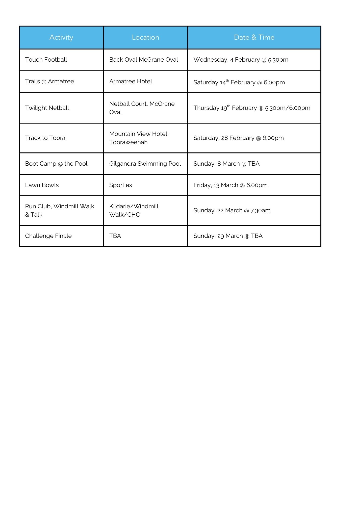 No Team? No Problem! Everyone is welcome — come along, get active and join the fun!